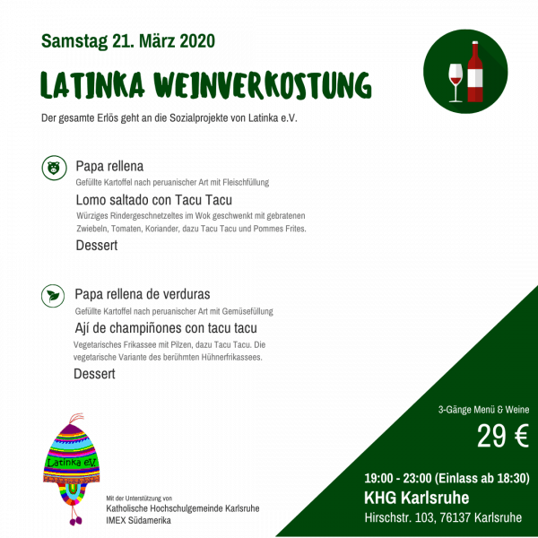 Möglich für Gruppen ab 10 Personen. Bitte kontaktieren Sie uns per Mail unter info[@]latinka.org