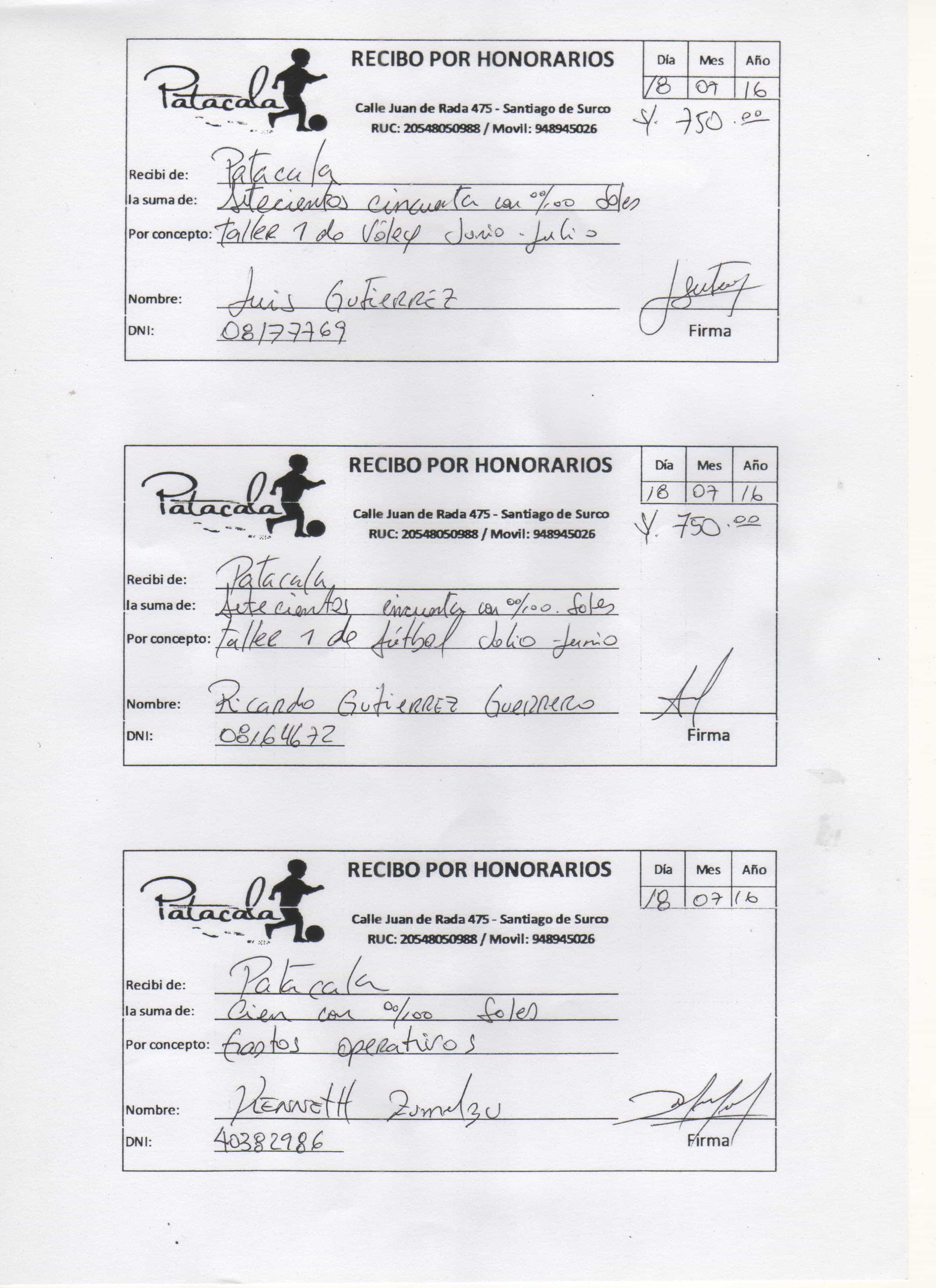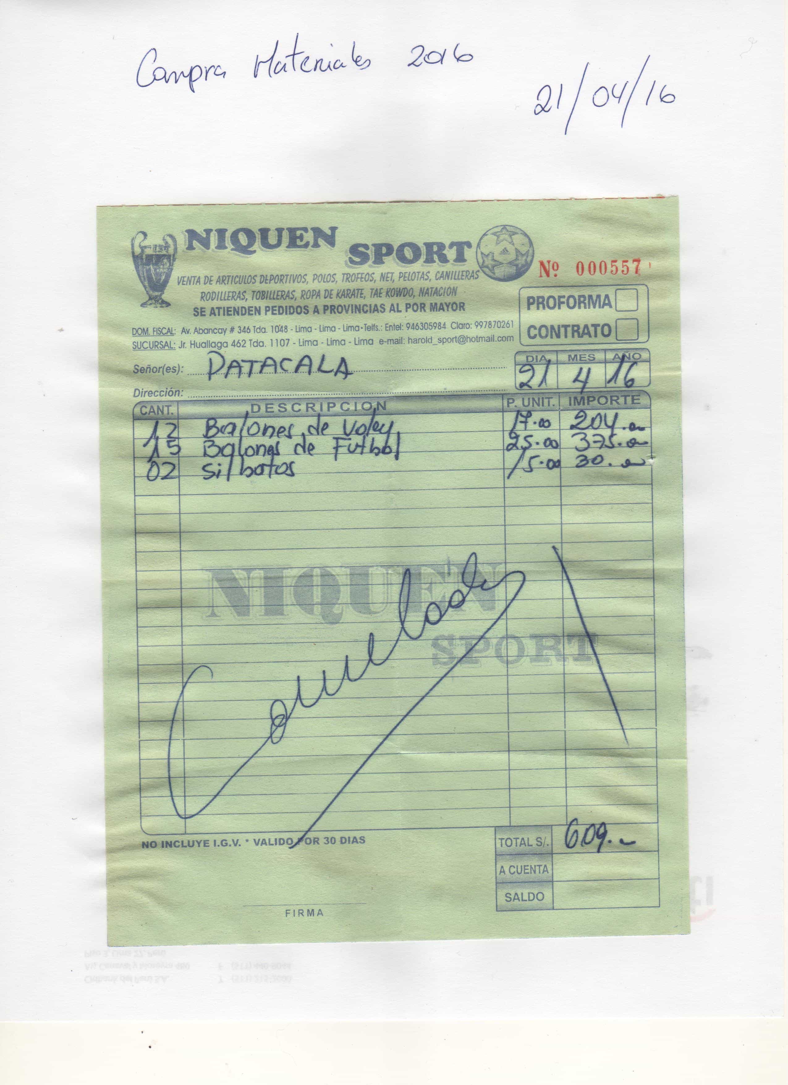 Wir haben alle Informationen, Belege und Dokumente zum Projekt bekommen. Die Dokumente belegen wofür die bisherige Investition von 2,200 Nuevos Soles (ca. 580€) eingesetzt wurde.